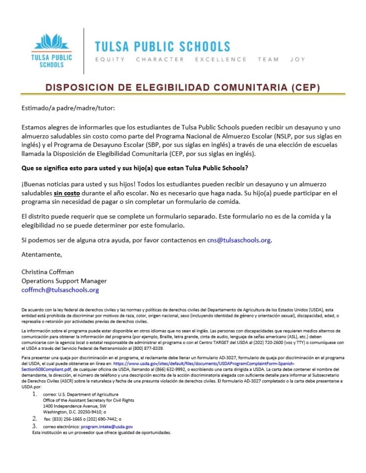 Click here to access the CEP letter for families / haga clic aqui para espanol